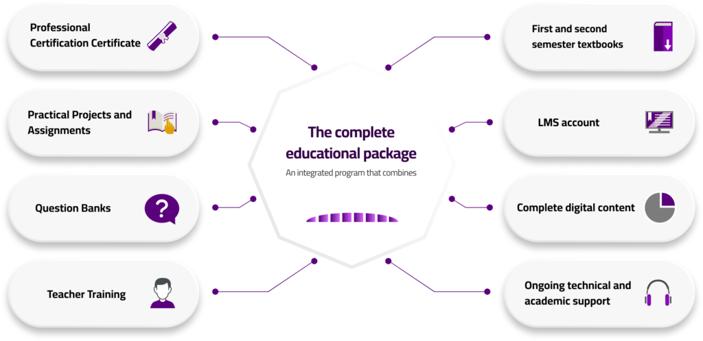 Since the traditional computer curriculum is no longer sufficient, we offer an advanced alternative based on applied textbooks, supported by a digital platform and practical experiences, to enable students to acquire real skills and begin their journey into the job market early in the following fields: